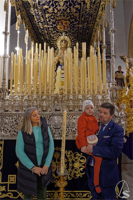 Llegó entonces el momento central de la tarde: el encendido del cirio. La niña Victoria Esperanza, con esa serenidad desarmante que solo tienen los que han mirado de cerca la enfermedad, prendió la mecha del cirio “En cada Lágrima una Vida” ante la Virgen de las Lágrimas, en medio de un silencio solo roto por alguna lágrima contenida. En ese instante, la emoción recorrió el templo, porque aquella pequeña llama hablaba de lucha, de curación, de agradecimiento y de una fe que reconocía la mano de Dios a través de la generosidad de los donantes.