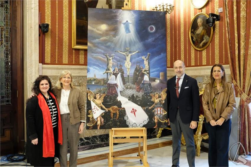 La presentación oficial tuvo lugar en la jornada de ayer en el Salón Colón del Ayuntamiento de Sevilla, un espacio cargado de simbolismo para la ciudad y para sus hermandades. El acto estuvo conducido por el hermano mayor de la Carretería, Miguel Ángel Moreno, quien destacó el valor espiritual y artístico de la obra, así como el gesto desinteresado del donante. Junto a él intervino la autora de la pintura, Elena Montero, encargada de desgranar el profundo contenido iconográfico de la composición. El acto fue clausurado por la delegada de Patrimonio y Distrito Casco Antiguo, Amidea Navarro.
