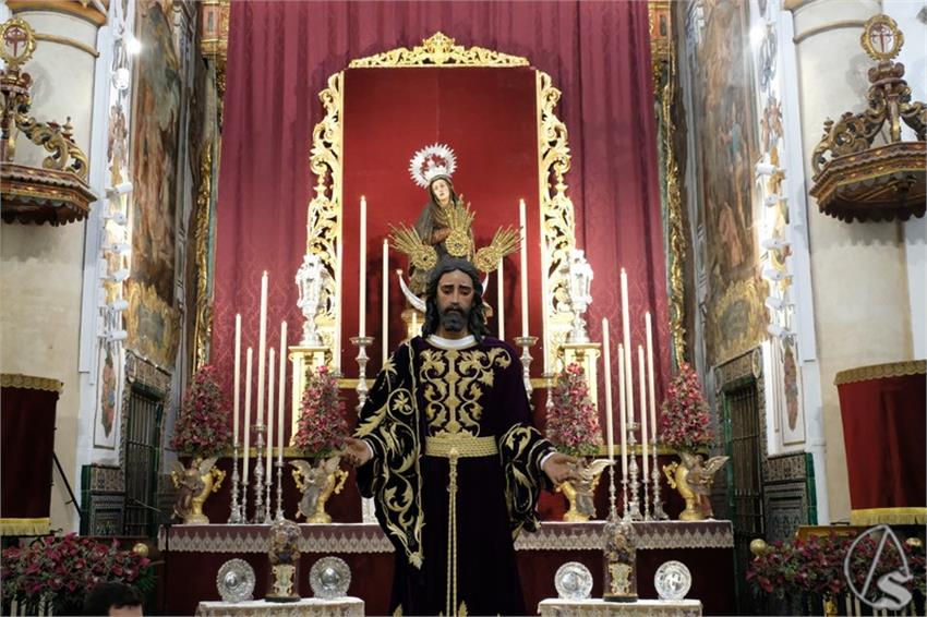Arte Sacro. Para el besapiés que se celebra a Nuestro Padre Jesús de la Redención en el Beso de Judas, la priostía de la hermandad ha dispuesto que el Señor se encuentre en el suelo del templo, sobre la peana de carrete que la Hermandad de Setefilla ha cedido generosamente para los cultos cuaresmales.