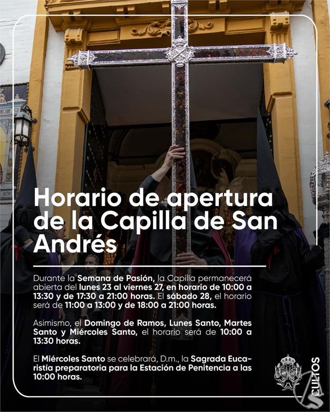 Panaderos. Horario de apertura de la Capilla de San Andrés