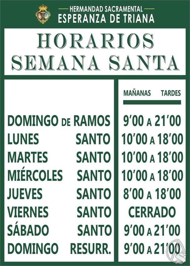 Esperanza de Triana. Horario de apertura de la capilla de los Marineros