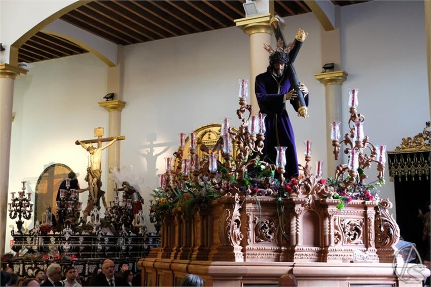 La llegada al templo del Cerro volvió a ser uno de los momentos más emotivos del recorrido. A las puertas de la parroquia aguardaban los estandartes corporativos de las Hermandades del Rocío y del Cerro, con sus hermanos mayores, junto al párroco del templo, Javier Brazo Delgado, que recibieron a los dos pasos de la corporación en un ambiente de recogimiento y fraternidad cofrade, reflejo del arraigo que esta estación mantiene desde que la hermandad fijara este destino penitencial en 2008.