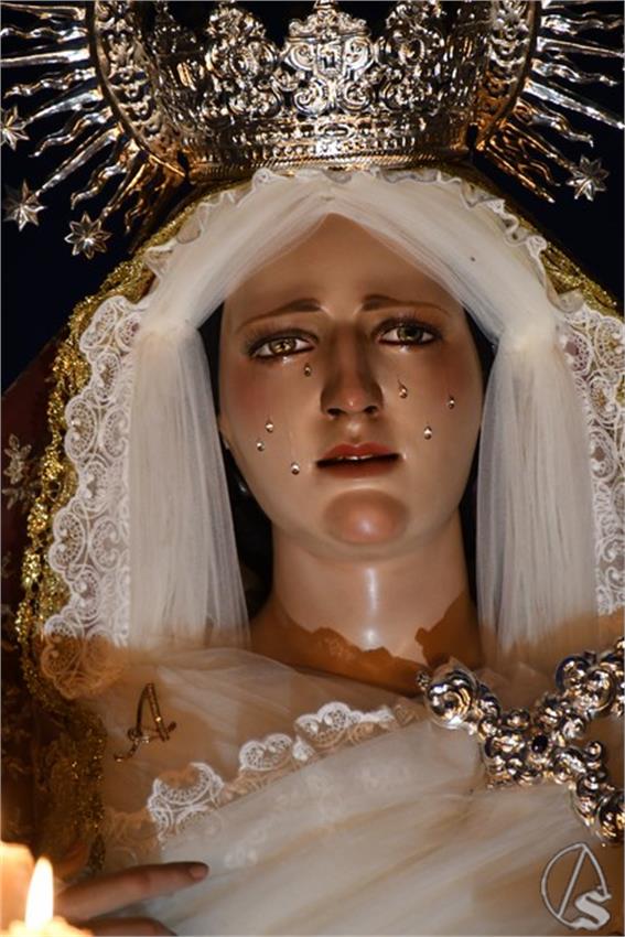 El Santísimo Cristo de la Paz es portado a hombros por sus vecinos sobre la cruz mientras la dolorosa es portada en unas sencillas andas. María Santísima de la Amargura es obra de Jesús Gálves Palos del año 2024.