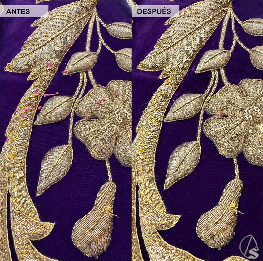 Arte Sacro. En el marco del programa de conservación del patrimonio procesional impulsado por la Archicofradía de la O en los últimos años, y una vez concluida la Semana Santa, se ha llevado a cabo la limpieza y mantenimiento de diversas piezas bordadas pertenecientes al patrimonio de la cofradía que requerían intervención.