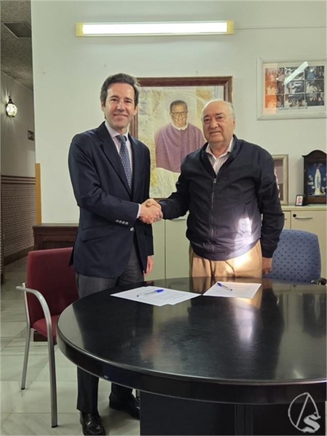 Arte Sacro. El hermano mayor de Las Cigarreras, Luis de la Iglesia García, y el vicepresidente de la Fundación Padre Leonardo Castillo, Florencio Gutiérrez Morena han firmado un convenio de colaboración que permitirá a los internos del centro penitenciario Sevilla 1 y del Centro de Inserción Social (CIS) de Sevilla reintegrarse en la sociedad con más garantías.