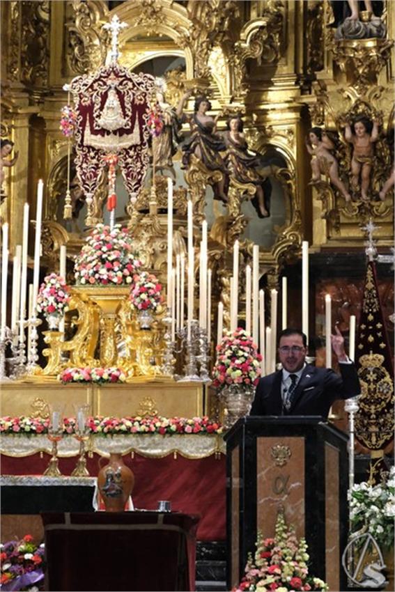 Moisés realizó un pregón muy familiar, comprometido con la vida y sus tradiciones y poniendo en valor a las hermandades de gloria. En una hora y cincuenta y seis minutos, el pregonero nos llevó desde mayo hasta diciembre, los nueve meses de gestación de la Virgen María.
