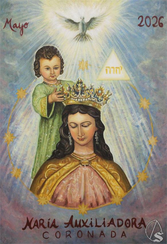 Arte Sacro. Este 19 de abril, tras la eucaristía dominical de la Comunidad Educativa, fue presentado el cartel anunciador del mes de mayo de 2026, una obra realizada por la artista Maika Galán del Toro bajo el título “Reina de la Trinidad Coronada”.