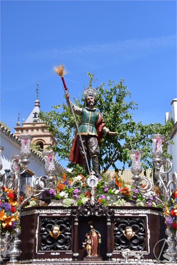 La comitiva la cerraba la portentosa imagen de San Isidro Labrador, obra de Juan del Castillo del año 1711. El Patrón de los agricultores procesiona sobre paso de madera tallada combinado con piezas de orfebrería en plata. Iluminan a la talla cuatro candelabros de guardabrisas en las esquinas. En las capillas de la canastilla se pueden observar las imágenes de San Miguel, titular del Templo donde reside, San Sebastián, Patrón de Marchena, Nuestra Señora del Rosario, Patrona de Marchena y Santa María de la Cabeza, esposa del Santo labrador. El paso estuvo exornado con una gran variedad de flores.