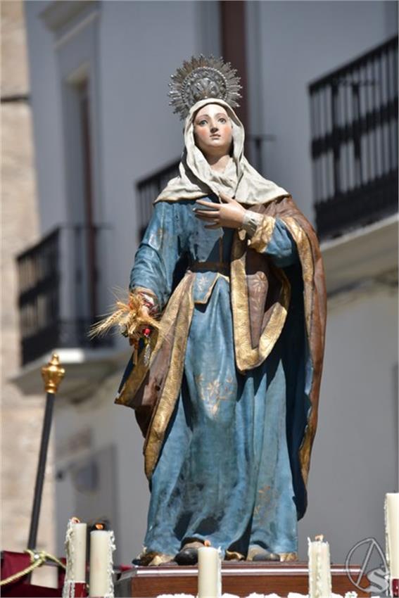 En esta gloriosa y extraordinaria procesión destacó por vez primera, la imagen de Santa María de la Cabeza, titular de la Hermandad y que se venera en el Templo de San Miguel, sede canónica de la Hermandad anfitriona. La bella imagen procesionó en unas sencillas andas de madera dorada iluminada por varias piezas de cera blanca y exornada con claveles blancos y romero a sus pies.