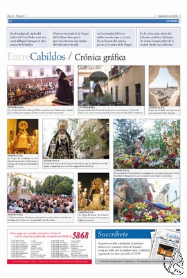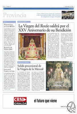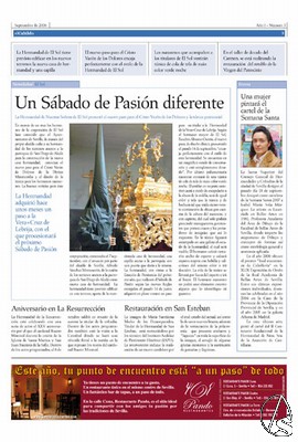 En su tercera edición de 8.000 ejemplares que serán distriuidos en los principales actos cofradieros del próximo fin de semana, la publicación aborda temas de primera actualidad del ámbito cofradiero con el desarrollo de las obras de restauración de la Iglesia del Salvador, la salida extraodinaria de la Virgen de las Mercedes de la Hermandad de Santa Genoveva, el V Centenario de la Virgen de la Consolación de Utrera o el Encuentro Nacional de Hermandades y Cofradías Penitenciales que en estos días se celebra en la localidad vallisoletana de Medina del Campo, así como una entrevista con el Director de la Banda Sinfónica Municipal de Sevilla, Francisco Javier Gutiérrez Juán.
