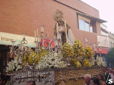 Esta Virgen del Carmen es una imagen de candelero, no tiene lagrimas en su rostro y procesiona dos veces al año, el Miércoles Santo bajo palio vestida de dolorosa y el día de su festividad, el 16 de Julio en una procesión de gloria representando la iconografía letífica de la Virgen del Carmen, patrona de los marineros y paseada en barcaza por las aguas del Guadalquivir.