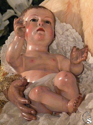 La virgen lleva en sus brazos al Niño Jesús recién nacido por lo que también se podía besar al Niño como señal de adoración en la festividad de la epifanía.