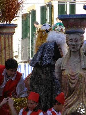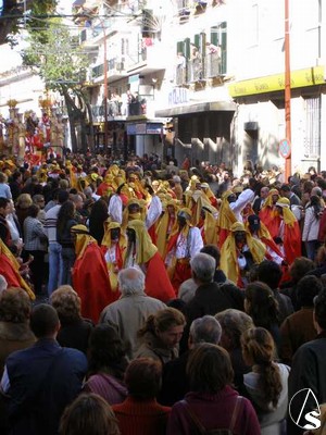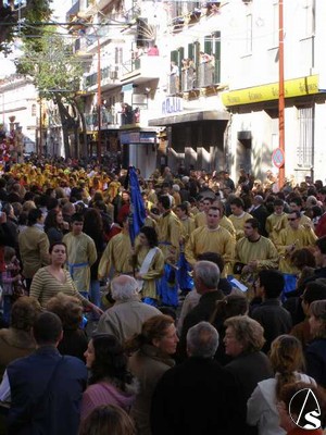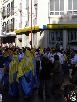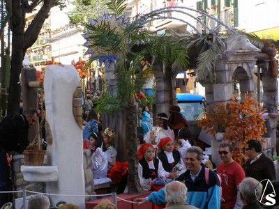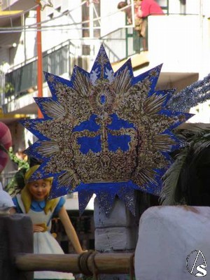 Beduinos, charangas, niños y disfrutes recorrieron las principales vías trianeras, Pagés del Corro, San Vicente de Paúl, San Jacinto, Evangelista, Castilla, donde fue aclamada la tercera carroza del Cortejo, que simulando a la Estrella iba la "corona de oro", que en el próximo verano se le pondrá en las sienes a María Stma. de la O.