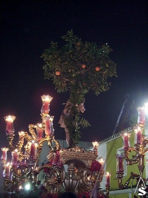 La salida tuvo lugar desde la parroquia de Ntra. Sra. de las Nieves, acompañaba al paso de esta imagen la banda de cornetas y tambores Nuestro Padre Jesús Cautivo y Cristo del Buen Fin de Sanlucar la Mayor y Aznalcazar.