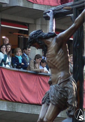 La Virgen de la Hiniesta llevaba la mano derecha en alto, como si se estuviera secando las lágrimas con el pañuelo y la izquierda hacia abajo. Esta postura ha sido copiada de una foto de la antigua Virgen de la Hiniesta, de la que se cumplen 75 años de su pérdida por el incendio en San Julián. En la presidencia del paso había una representación municipal con el alcalde, Alfredo Sánchez Monteseirin, a la cabeza. La Virgen pasó por la Campana con las marchas “Madre Hiniesta” y “Estrella Sublime”.