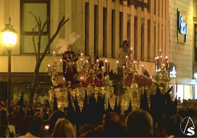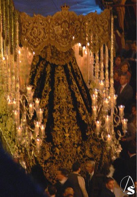 La Virgen del Socorro discurrió con dos marchas interpretadas por la banda de las Cigarreras. Llevaba un tocado blanco y muy bien vestida. Cuando el paso se metió en Sierpes dieron las 12 de la noche, mucho retraso para un día que, afortunadamente, pudimos ver al completo y sin sobresaltos de lluvia, pero con mucho frío.