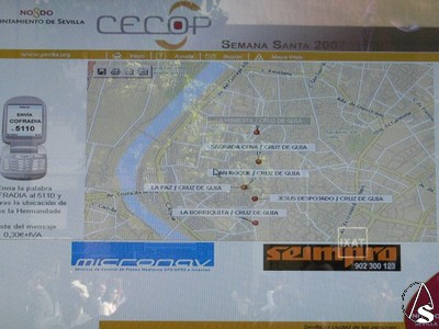 De la misma forma, en esta web ( www.sevilla.org ) también se recogerán datos de Hermandades, recorridos, notas de prensa, fotografías, servicios públicos, recorridos de autobuses, paradas de taxi, W.C., puntos asistenciales, etc.