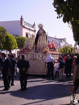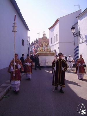 En el primero y tras abrir el cortejo la cruz parroquial el paso del Señor Resucitado, a continuación y despues de las representaciones de las demás hermandades el paso de María Santísima de los Dolores en su paso de salida pero sin el palio y por ultimo el paso de la Custodia con el Santísimo Sacramento.