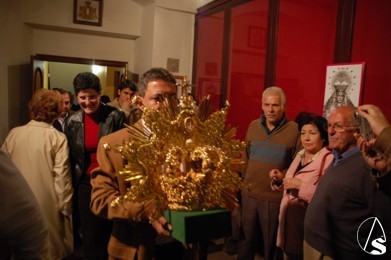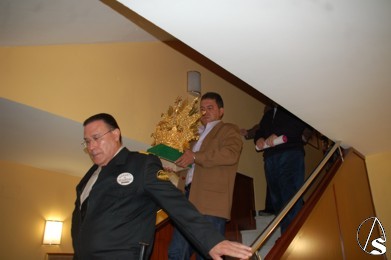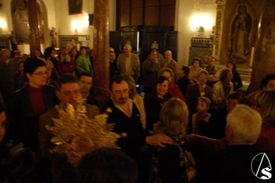 A las 20:45, el prioste de la corporación del Viernes Santo, depositó la corona en el Altar Mayor de la Parroquia de la calle Castilla para presentársela a sus hermanos y al pueblo en general.