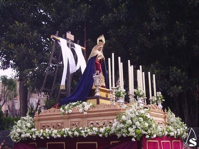 La primera que les vamos a mostrar es la de Triana, que un año más realizó su salida procesional desde la Real Parroquia de Santa Ana, recorriendo las calles del arrabal trianero y visitando algunas de sus hermandades, como por ejemplo la capilla de la Estrella a los sones de la marcha clásica "Oh Bendita Estrella", interpretada por la Agrupación Musical Dulce Nombre de Jesús de Granada.