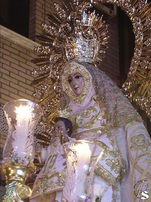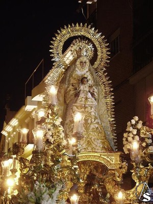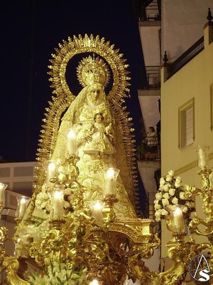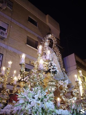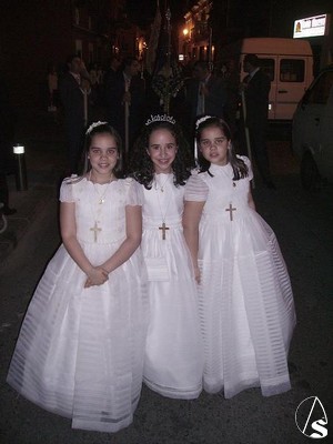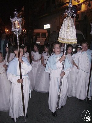 La Virgen salió para ser venerada por todos los alcalareños en una procesión que se inició a las ocho de la tarde cuando comenzaba a salir la cruz parroquial y dos ciriales, portado todo ello por niños, ya que estos formaban gran parte del cortejo vestidos la mayoría con sus recien estrenados trajes de Primera Comunión.