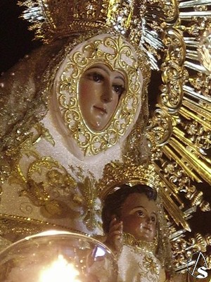La Virgen, esplendorosa como siempre toda de blanco, se paseó llevada por veinte hermanos costaleros acompañada por ese aire señorial de los sones de la Oliva de Salteras.