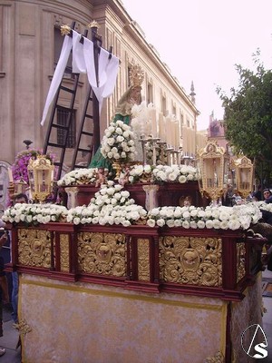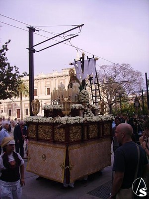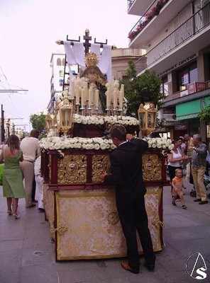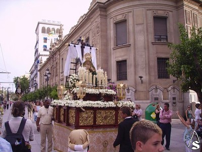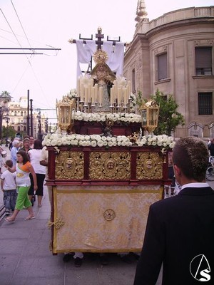 Eduardo Fdez. López. En la tarde del sábado 19 de Mayo procesionó por las calles centricas de Sevilla el paso de la cruz de mayo de Monasterio, como así se le conoce a esta procesión de la Asociación de Nuestra Señora de los Angeles de Castilleja de la Cuesta.