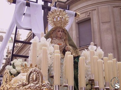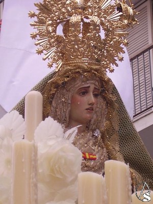 Esta cruz de mayo procesiona con una dolorosa de tamaño academico, Nuestra Señora de la Cruz, y realizada por el escultor Juán de la Cruz al igual que la otra dolorosa titular de la asociación, la Virgen de los Angeles, que es una dolorosa de tamaño natural y que no procesiona.