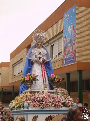 En este recorrido de ida la Virgen visitó el Colegio de los Padres Escolapios, donde llegó la imagen hace 24 años cuando un grupo de mujeres del barrio la encontraron muy descuidada en un convento sevillano.