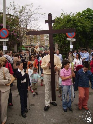La procesión se inició algo más tarde de lo previsto debido a la amenaza de lluvia por lo que se decidió acortar el recorrido y al haber un coche mal aparcado justo en la puerta trasera del club Santa Aurelia, lugar por donde tenía que salir el paso.
