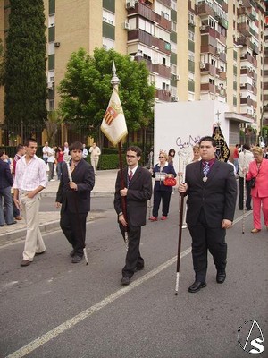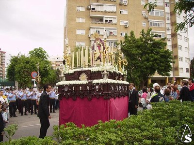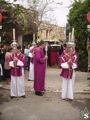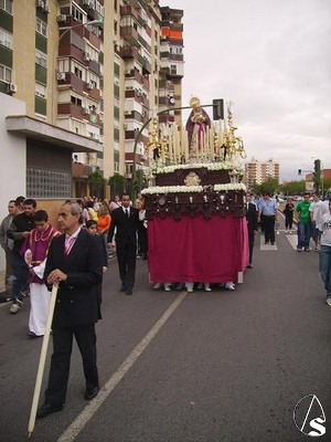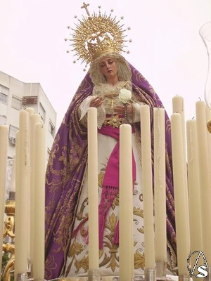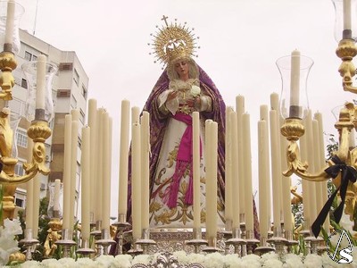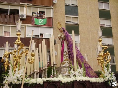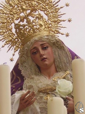 Presenciando la salida se encontraba el conocido escultor Antonio Joaquin Dubé de Luque autor de la Virgen de la Caridad, acompañando en su procesión a esta bella dolorosa que tallara en 1998.