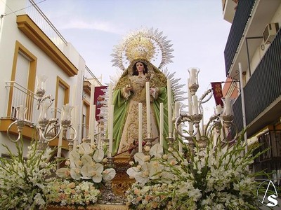Eduardo Fdez. López. Ayer jueves, festividad del Corpus Christi también fue un día festivo en algunas localidades de nuestra provincia, entre ellas La Puebla del Río, donde salió por la tarde desde la Iglesia Parroquial de Nuestra Señora de la Granada la procesión del Corpus Christi.
