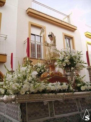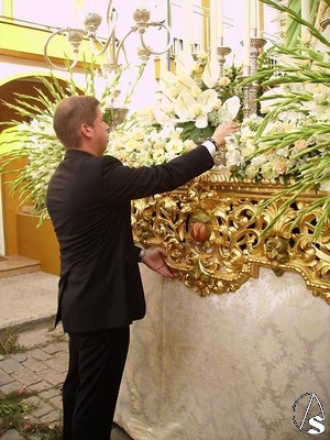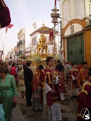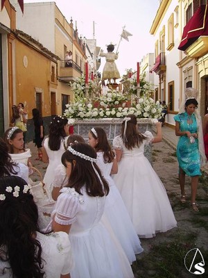 Provincia. San Sebastián, el Niño Jesús y la Virgen de la Granada acompañaron al Santísimo en la procesión del Corpus de la Puebla del Río (1ªparte)