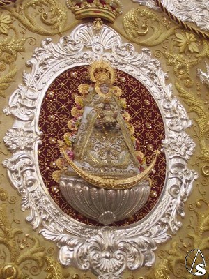 La talla de la Virgen es de autor anónimo fechada en el siglo XIX, porta en su mano izquierda al Niño Jesús mientras en la derecha lleva una granada en metal dorado símbolo de Cristo y de la unidad de la Iglesia Católica.
