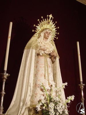 Arte Sacro. Hoy la dolorosa que le mostramos de blanco es la Virgen del Amor, primera de las titulares marianas de la Hermandad de la Resurección.