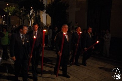 El cortejo lo abría un cuerpo de carráncanos con un muñidor en el centro, posteriormente el Guión Sacramental escoltado por dos faroles y acontinuación hermanos con cirios de color rojo y segmentados por el Simpecado Sacramental y el Estandarte de la corporación del Miércoles Santo.