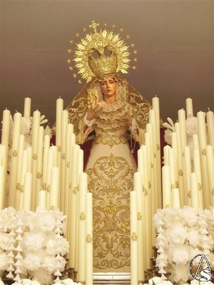 Esta asociación al igual que la anterior estrena el estandarte corporativo bordado en oro fino, plata y seda, también estrena la Virgen saya de tisú beige de recorte realizada por Mariano Martín Santoja.