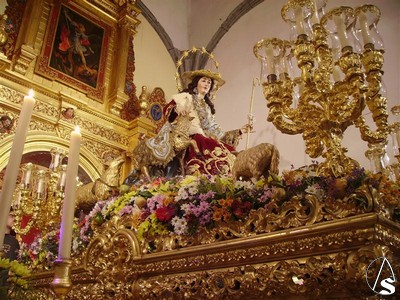 Este año el principal estreno en su salida procesional serán cuatro ciriales y pértiga con vástago de madera en estilo rocalla, a juego con las demás piezas de orfebrería y que han sido realizados en el taller de Manuel de los Ríos.