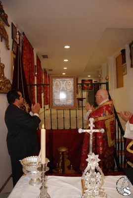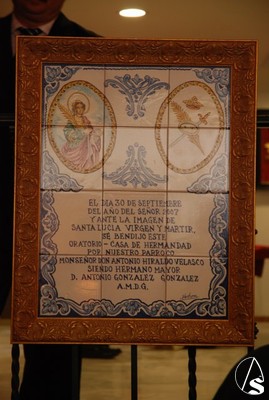 Antonio Hiraldo Velasco, párroco de San Román, director espiritual de la hermandad y canónigo de la S.I.C. se encargó de bendecir el nuevo hogar de Santa Lucía. Al término se descubrió una placa para conmemorar la buena nueva.