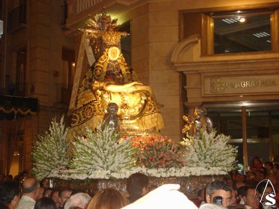 es patrona , luciendo el manto y la corona regalos de la ciudad en su Coronación Canónica , el 20 de septiembre de 1913. La banda del regimiento de Infantería, antiguo Soria 9, se desplazo hasta la ciudad de la Alhambra para acompañar a la la Virgen de las Angustias, “la que vive en la carrera”.