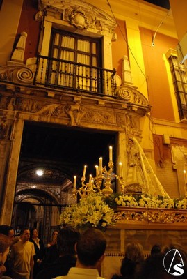 A las 20,00 horas, media hora más tarde de lo programado se abrían las puertas de la casa de los marqueses de la Motilla, en la calle Cuna, que es el lugar donde se encuentra el paso procesional.