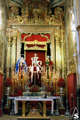 A continuación pueden ver una galería del altar instalado para el quinario tomadas desde el suelo y desde el coro y que han sido posible gracias a la junta de gobierno.