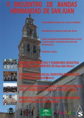 Julio Ojeda. El próximo 24 de febrero tendrá lugar el 2º encuentro de bandas organizado por la Hermandad de San Juan de Écija. Contará con las siguientes bandas: