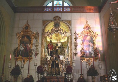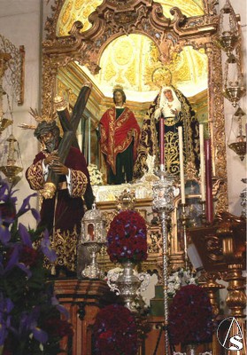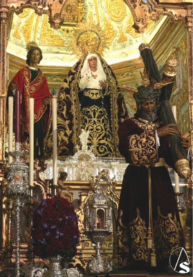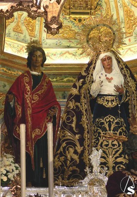 En el mismo, aparte de un colosal montaje floral, aparece María Santísima de las Angustias en su Camarín junto a San Juan.