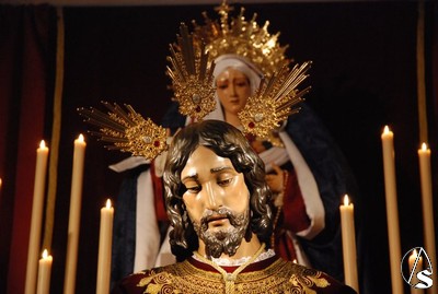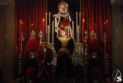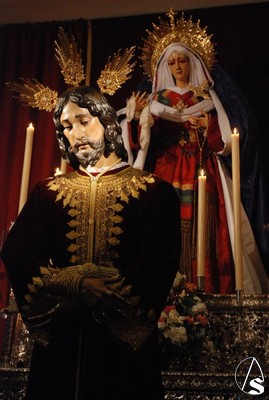 Como ya les informamos en este portal cofrade, tras la imagen del Señor figuraba la Virgen de la Esperanza Reina de los Mártires, titular de una asociación cofrade residente en la misma parroquia, y que están en trámites de fusionarse con la hermandad del Juncal.