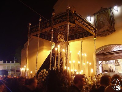 Eduardo Fdez. López. Es tradición en la hermandad de la Soledad de Alcalá del Río el llevar a su titular, la Virgen de los Dolores en su Soledad en procesión desde su capilla hasta la iglesia parroquial de la Asunción para la celebración de su septenario.