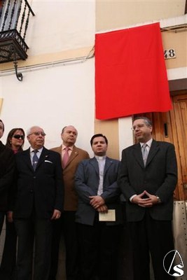 Ayer sábado 8 de marzo fue descubierto y bendecido un azulejo conmemorativo en la casa taller del maestro imaginero Antonio Castillo Lastrucci, que esculpiera las imágenes titulares de la hermandad del Lunes Santo, en la calle San Vicente nº 48.