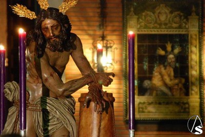 Daniel García Acevedo. Tras la eucaristía de 20,00 horas en la capilla de la Fábrica de Tabacos, tuvo lugar el Vía-Crucis que todos los años realiza la hermandad de las Cigarreras con el Señor atado a la Columna.
