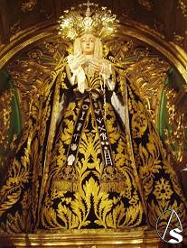 Entre las imágenes más bellas de la Virgen de la Soledad que nos han llegado se encuentra sin duda el grabado de principios del siglo XIX redescubierto recientemente. En aquella lejana imagen se mostraba a la Santísima Virgen con un cíngulo en forma de estola decorada con los motivos de la Pasión. El pasado año, la hermandad recuperó esta antigua pieza muy común durante el siglo XVIII entre las dolorosas Sevillanas, en la que influyó la iconografía servita de la virgen como sacerdotisa de Cristo representándose de luto, con roquete blanco y estola con los símbolos del martirio.