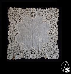 Singular pañuelo bordado a mano con calado de jazmín, realizado y donado por N: H. María Dolores Gallardo Sierra.
